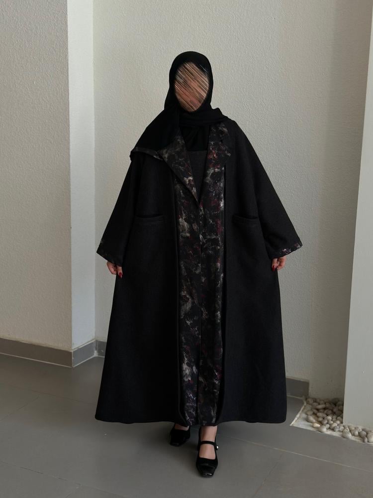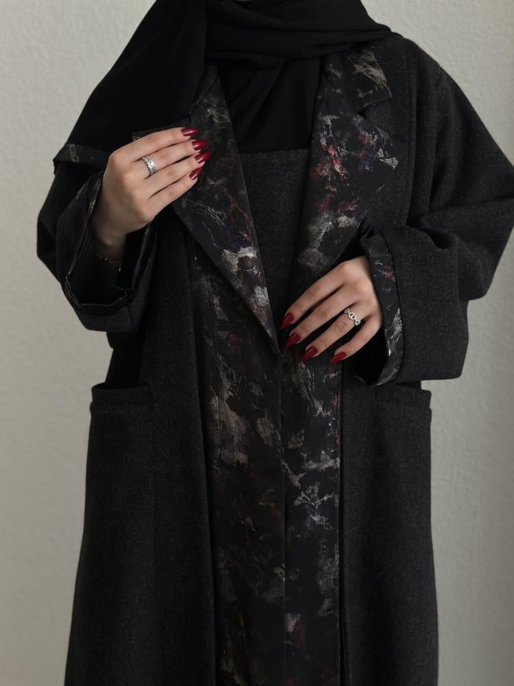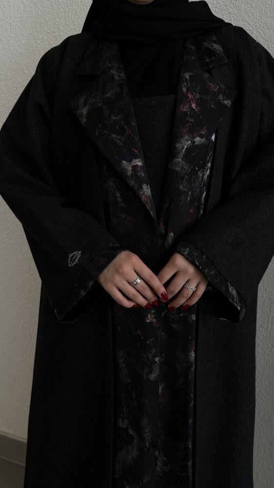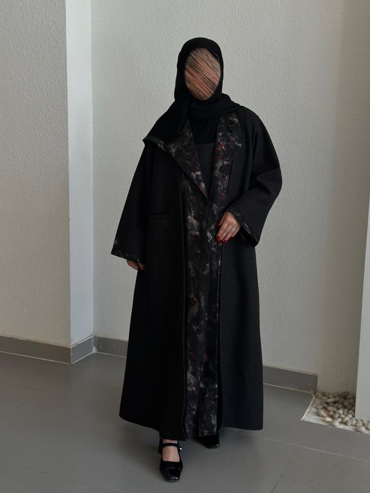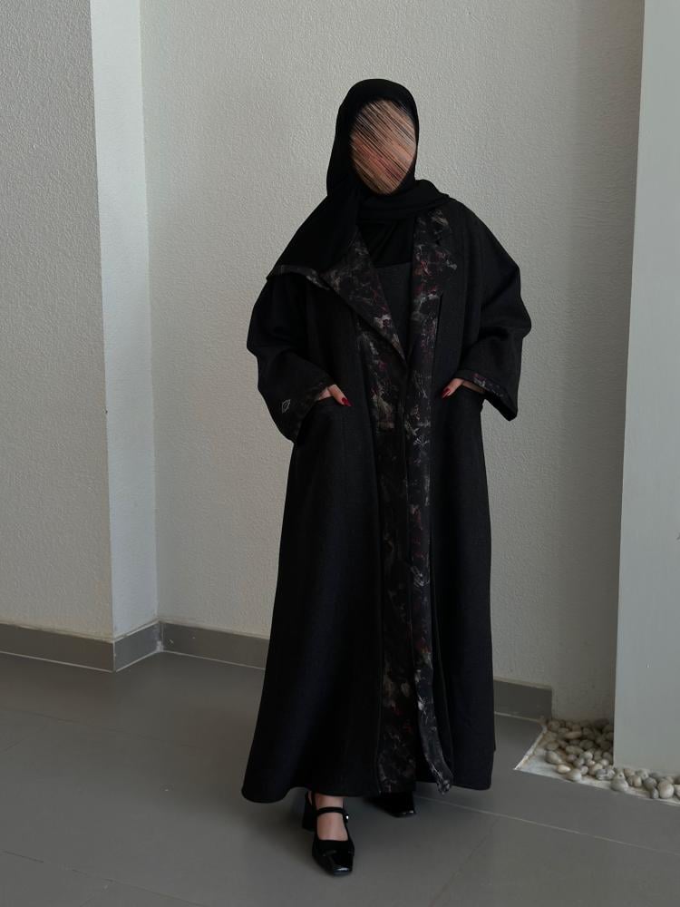 عباية شتويه قماش(جوخ) نص كلوش اضافه قماش ورد بجيوب اماميه