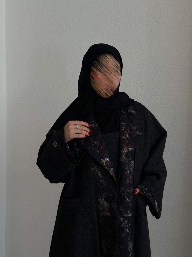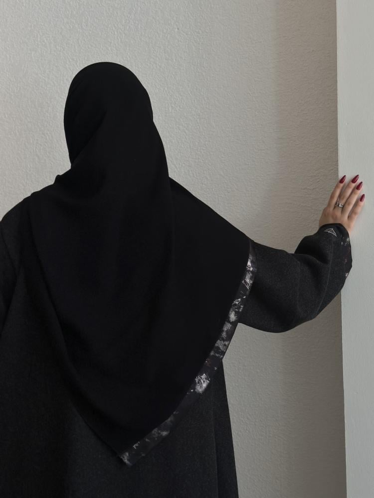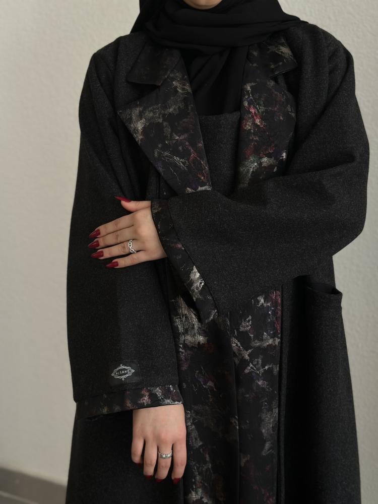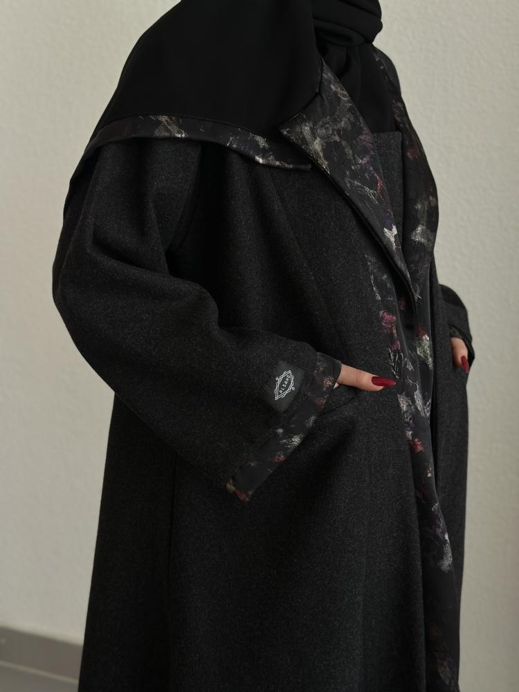 عباية شتويه قماش(جوخ) نص كلوش اضافه قماش ورد بجيوب اماميه