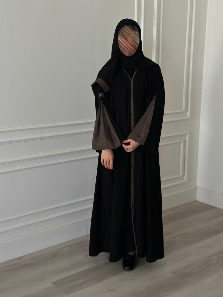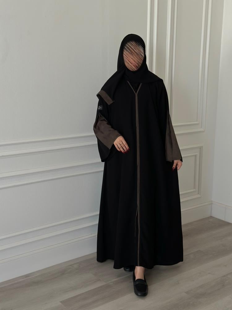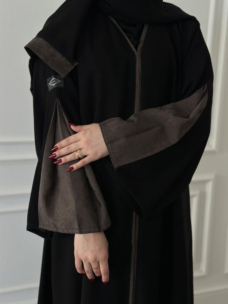 عباية نص كلوش قماش(ملكي)اضافه قماش مهرجان بني